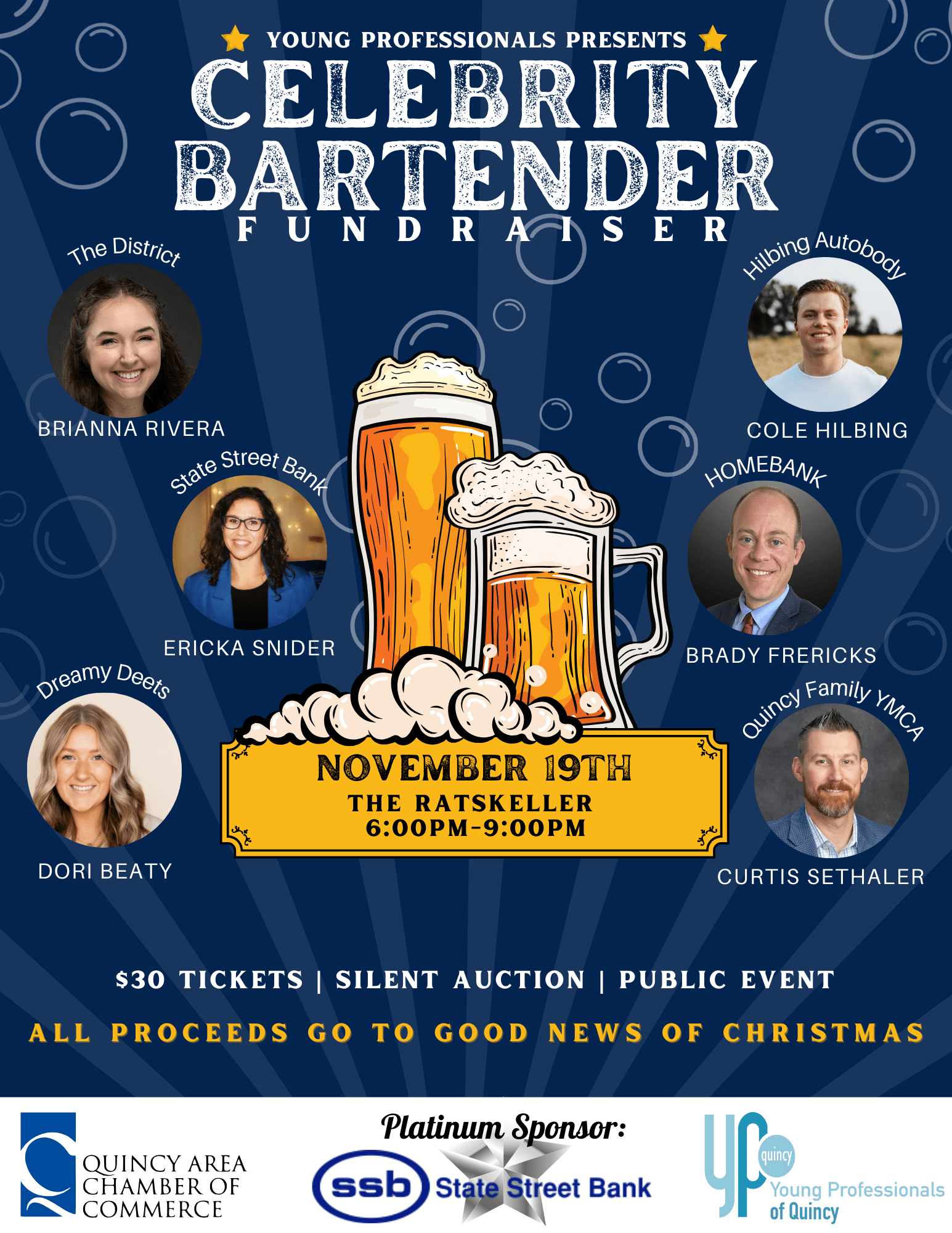 How it works: We invite 6 local celebrities to be bartenders for the night. Teams of bartenders will "dual-off." The bartender team with the most tips wins! All the tips received will be donated to Good News of Christmas.
